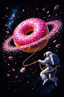 Bestelle dieses Popart-Wandbild Astronaut entdeckt einen kosmischen Donut-Planeten von Dodik Hariyono als Kunstdruck auf Leinwand, Alu-Dibond, als Poster, Fototapete oder Acrylglasbild.