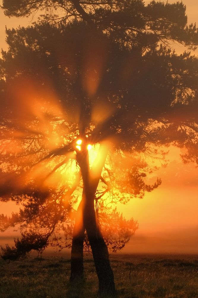Ein magischer Morgen auf dem Leersumer Feld. Die Sonne geht über dem Feld auf und färbt alles schön orange. Wie schön ist es doch, bei Sonnenaufgang draußen zu sein!