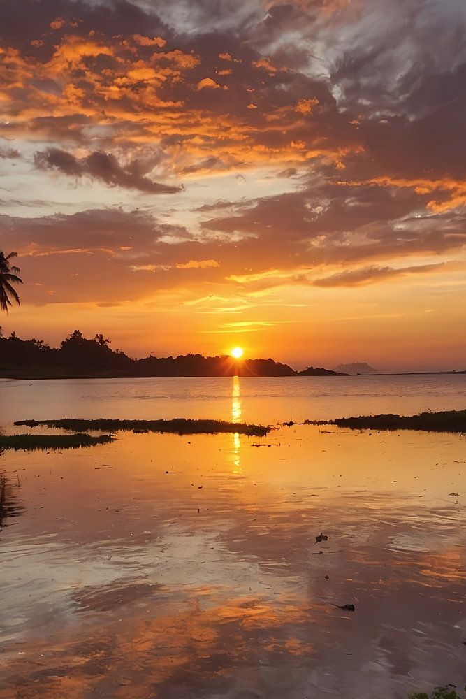 Dieses atemberaubende Design fängt die heitere Schönheit eines Sonnenuntergangs an der Küste ein. Die feurigen Farben der untergehenden Sonne spiegeln sich wunderschön im ruhigen Wasser, während die Silhouetten der Palmen am Horizont ein Gefühl von Ruhe und tropischem Charme vermitteln. Dieses Kunstwerk ist ideal für jeden, der einen Hauch von Natur und Ruhe in seinen Raum bringen möchte. Perfekt für Schlafzimmer, Büros und andere Räume, in denen eine entspannende Atmosphäre gewünscht ist. Lassen Sie dieses schöne Stück Ihre Wand erleuchten und bringen Sie ein Gefühl von Frieden und Schönheit in Ihren Alltag.