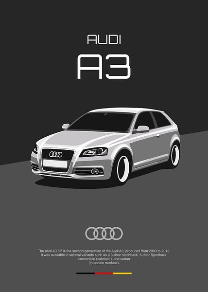 Bestelle diese Illustration Audi A3 8P von Kaminarirace als Reproduktion auf Leinwand, Alu-Dibond, als Poster, Fototapete oder Acrylglasbild.