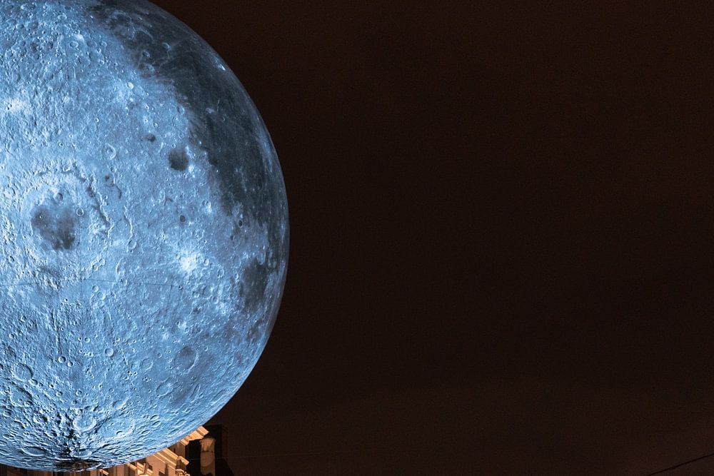 Während des Lichterfestes im schönen Gent an der Graslei hängt ein großer beleuchteter Mond