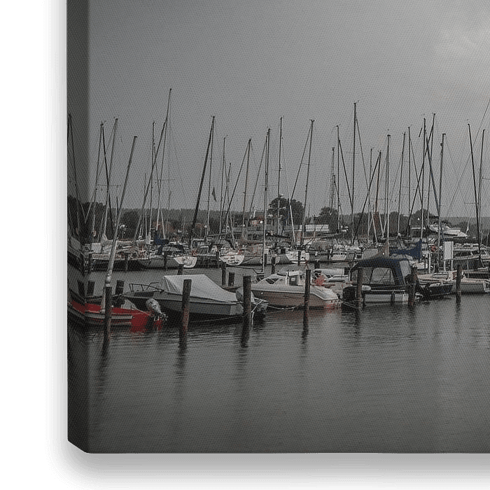 Bestelle das Foto Aufziehende Wolken über dem Yachthafen mit Segelbooten im Ferienort Rerik an der Ostsee in Mecklenbu von Maren Winter als Reproduktion auf Leinwand, Alu-Dibond, als Poster, Fototapete oder Acrylglasbild.