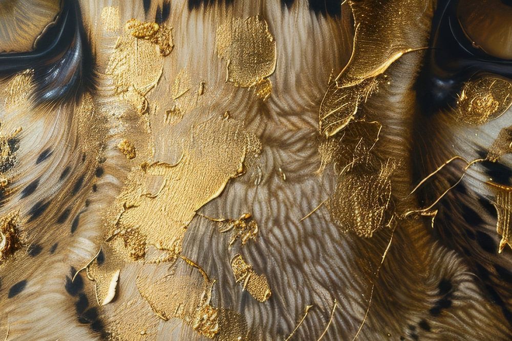 "Eyes of Gold" bietet einen tiefen Einblick in die Seele eines Leoparden, wobei die intensiven Gold- und Schwarztöne eine tiefe Emotion und Mystik vermitteln. Die akribische Detailgenauigkeit des Fells in Kombination mit den glänzenden goldenen Texturen erweckt die wilde und majestätische Natur des Tieres zum Leben. Die Augen, voller Weisheit und Kraft, ziehen den Betrachter direkt in eine Welt der unberührten Natur und rauen Schönheit. Dieses Kunstwerk ist ein Muss für Liebhaber von Tierporträts und verleiht jedem Interieur eine luxuriöse und exotische Atmosphäre.