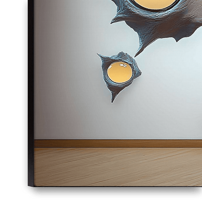Treten Sie ein in die surreale Welt von „Augengenese“, einer multidimensionalen Wandskulptur, die Wahrnehmung und Präsenz herausfordert. Diese abstrakte, fremdartige Form wirkt, als wäre sie aus einer anderen Dimension hervorgegangen – ihre organische, stachelige Membran zerreißt die Realität und gibt den Blick auf leuchtende, goldene…