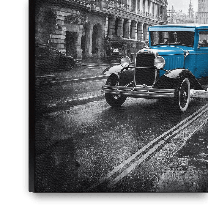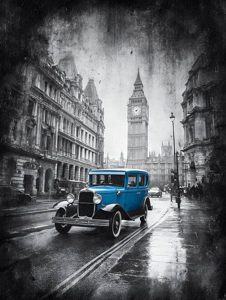 Bestelle das Foto Auto in einer Stadt mit Uhren von MNS Designs als Reproduktion auf Leinwand, Alu-Dibond, als Poster, Fototapete oder Acrylglasbild.