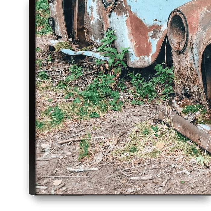 Bestelle das Foto Autofriedhof Bastnas Schweden von Karin Verweij als Reproduktion auf Leinwand, Alu-Dibond, als Poster, Fototapete oder Acrylglasbild.