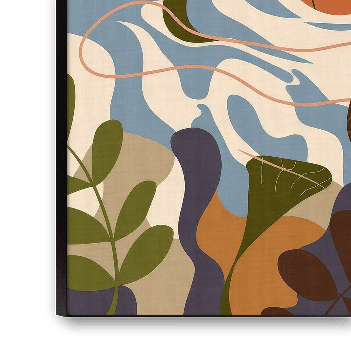 Eine fließende, ausdrucksstarke Komposition von Herbstblättern in satten Erdtönen, die die Bewegung des Übergangs in der Natur einfängt.