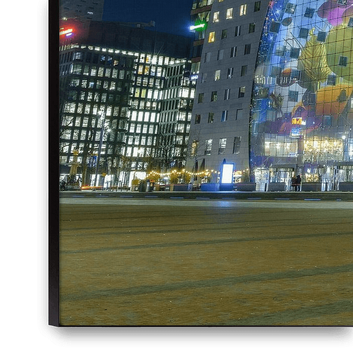 Bestelle dieses Rotterdam-Wandbild Avondfoto van de Markthal in Rotterdam von Mark De Rooij als Reproduktion auf Leinwand, Alu-Dibond, als Poster, Fototapete oder Acrylglasbild.