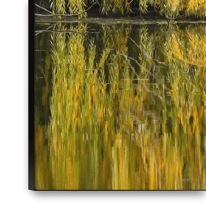 Die Spiegelung der Trauerweide im See wurde mit der Bildbearbeitung der Ölmalerei nachempfunden, es entstand ein malerischer Effekt.