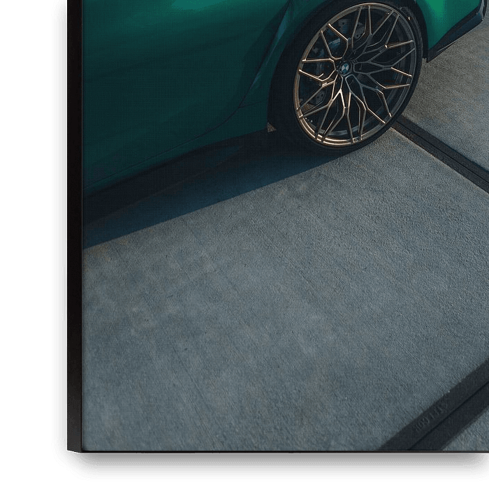 Bestelle das Foto BMW M3 G80 Flughafen Schlichte Symmetrie von Sebastiaan van 't Hoog als Reproduktion auf Leinwand, Alu-Dibond, als Poster, Fototapete oder Acrylglasbild.