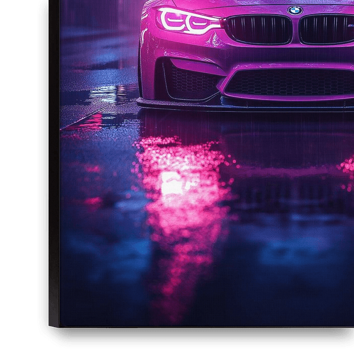 Ein BMW mit Neonfarben war vor dem Geschäft geparkt und brachte die Schönheit der Lichter mit einem scharfen und auffälligen Blinklicht zur Geltung