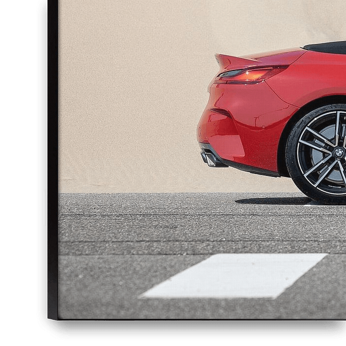 Ein roter BMW Z4 M40i G20 Roadster Cabriolet vor einer Düne an einem sonnigen Sommertag,