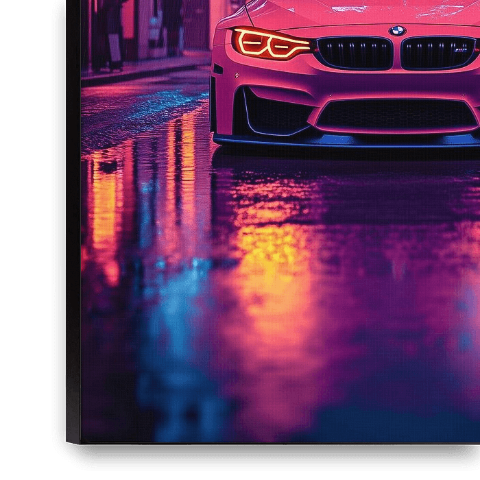 Ein BMW mit Neonfarben war vor dem Geschäft geparkt und brachte die Schönheit der Lichter mit einem scharfen und auffälligen Blinklicht zur Geltung
