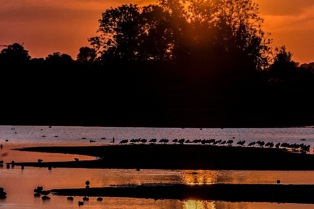 Baarzandse creek zwischen Breskens und Schoondijke bei Sonnenuntergang. Vögel bereiten sich auf die Nacht vor.