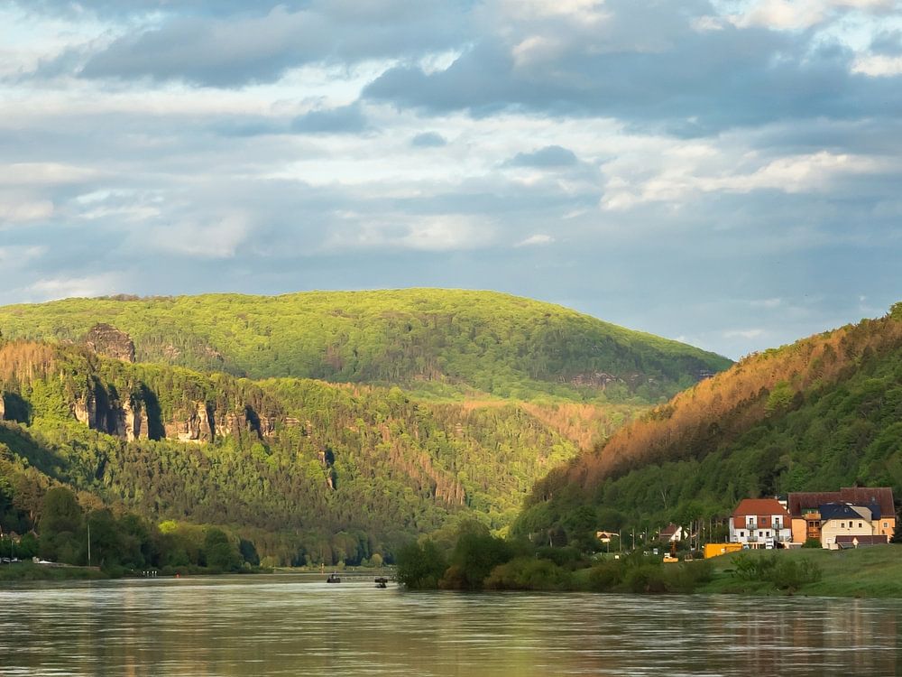 Die Hänge spiegeln sich, der Himmel und die Wolken auch. Gerade ist die Wasseroberfläche recht plan, denn es gibt nur wenig Verkehr. Und so reflektieren all die wunderbaren Reize der Umgebung vom Wasser direkt zurück zu mir, ins Herz, in die Seele und auf den Sensor der Kamera natürlich auch. Es ist wieder so ein Moment zum Abschalten und zum Dankbarsein, dass diese schöne Region, dass die Berge, Felsen und Wälder des Elbsandsteingebirges meine Heimat sind.