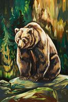 Ein beeindruckendes Kunstwerk, das die Kraft und Gelassenheit der Natur einfängt. Dieses Gemälde zeigt einen prächtigen Bären auf einem Felsen in einer farbenfrohen, üppigen Waldlandschaft. Die warmen Braun- und Grüntöne in Kombination mit den dynamischen Pinselstrichen bringen Ruhe und Lebendigkeit in jeden Raum. Perfekt als Blickfang…