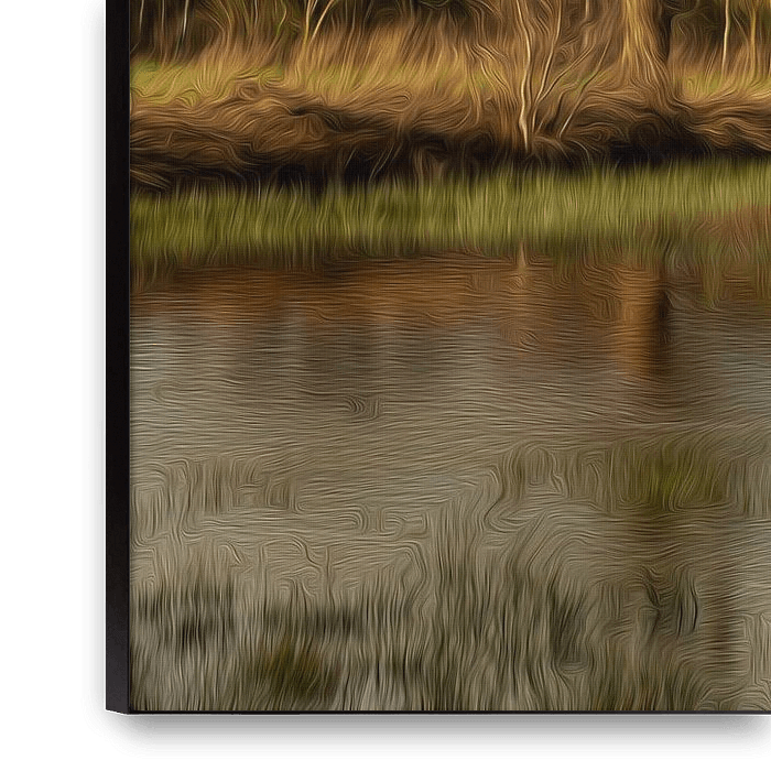 Bestelle dieses Landschafts-Wandbild Bäume auf der Drentsche Aa (Ölfarbe) von Karla Leeftink als Reproduktion auf Leinwand, Alu-Dibond, als Poster, Fototapete oder Acrylglasbild.