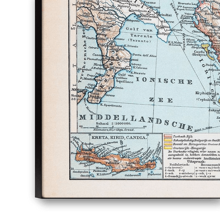 Diese alte Karte aus der Zeit um 1900 zeigt die so genannte Balkanhalbinsel. Der Balkan bildet die östlichste der drei großen Halbinseln in Südeuropa. Die offizielle Bezeichnung für die Region lautet Südosteuropa. Er wird im Norden durch die Flüsse Save und Donau und im Nordwesten durch die Linie Triest-Ljubljana begrenzt. Der Balkan umfasst die folgenden Länder: