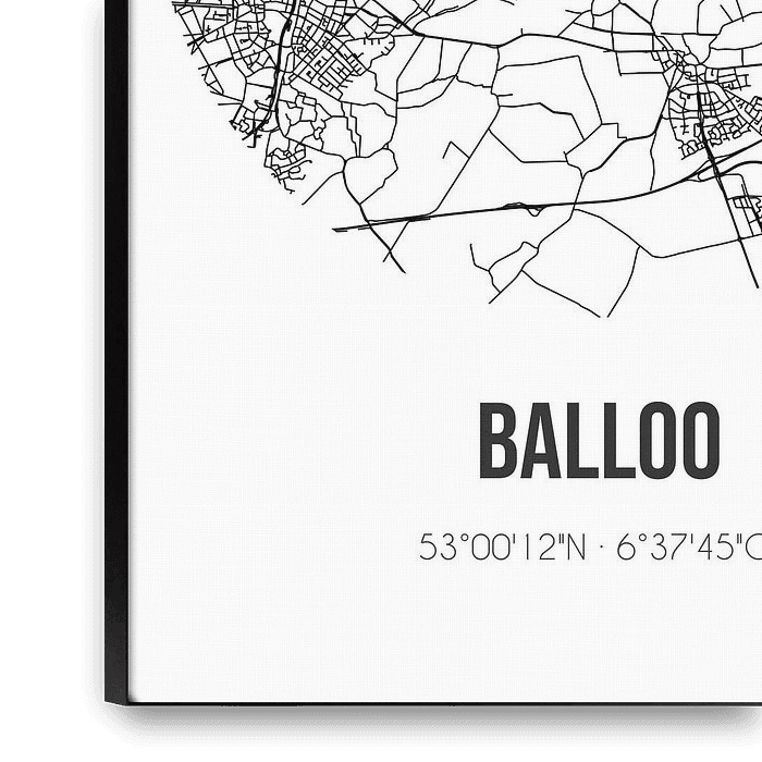 Bestelle dieses abstrakte Wandbild Balloo (Drenthe) | Karte | Schwarz-Weiß von Ortsdrucke als Reproduktion auf Leinwand, Alu-Dibond, als Poster, Fototapete oder Acrylglasbild.