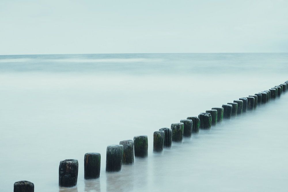 Paalhoofden in Baltische de zee bij het Poolse badplaatsje Dziwnow