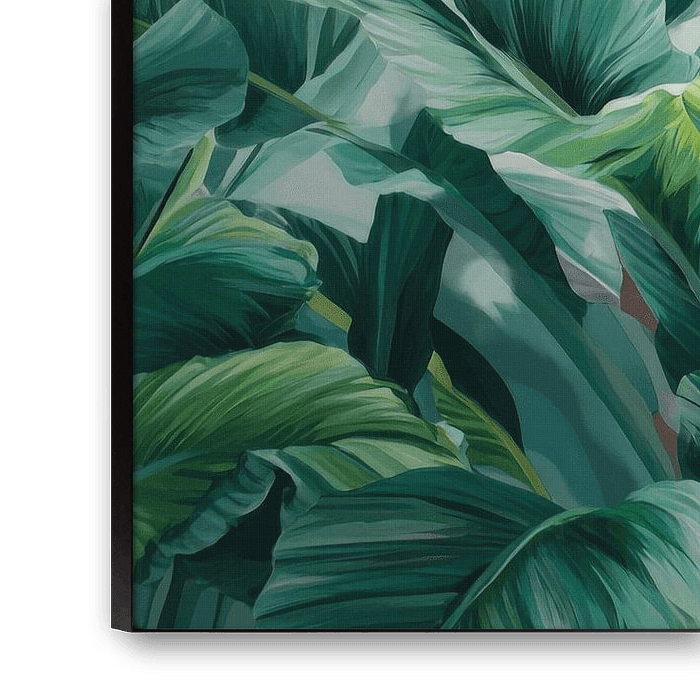 Dieses heitere botanische Kunstwerk zeigt eine elegante Sammlung von Bananenblättern in einer raffinierten Farbpalette aus Mintgrün, Weiß und rosa Akzenten. Das weiche Licht schafft eine verträumte Atmosphäre, in der die Blätter vor dem pastellfarbenen Hintergrund anmutig zu tanzen scheinen. Die harmonische Pinselführung und die luftige Komposition machen dieses Werk perfekt für beruhigende Innenräume mit tropischem und modernem Flair. Eine ideale Wahl für alle, die natürliche Schönheit mit subtilen Farbtönen kombinieren möchten.