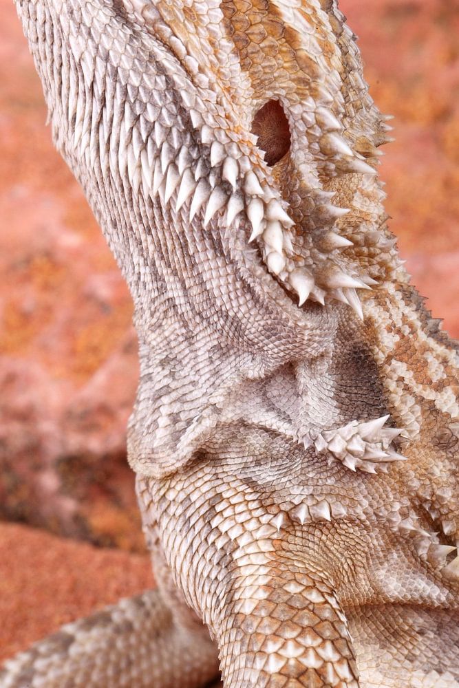 Ein Porträt einer Bartagame. Die Bartagame lebt in Teilen Australiens und ist in wüstenähnlichen Gebieten zu finden. Die Bartagame hat mehrere Anpassungen, um die Hitze am Tag und die kalten Nächte zu überleben. Die Bartagame ist ein Allesfresser und jagt Beutetiere, frisst aber auch Blumen und andere Pflanzenteile. Sie ist eine wärmeliebende Art, die ein großes Bedürfnis nach Licht und Wärme hat. Bartagamen haben eine ziemlich ausgefeilte Form der visuellen Kommunikation, indem sie mit dem Kopf nicken und mit den Beinen winken. Wichtige Feinde sind verschiedene Schlangenarten und Raubvögel.