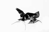 Zwei Schwalben tanzen im frühen Frühling über dem Hafen von Meerwijck. Sind gerade von ihrer langen Reise aus Afrika zurückgekehrt.