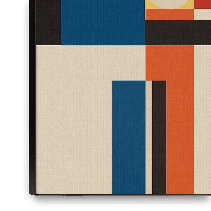 Bestelle dieses abstrakte Wandbild Bauhaus-Blockanordnung von Little Dean als Reproduktion auf Leinwand, Alu-Dibond, als Poster, Fototapete oder Acrylglasbild.
