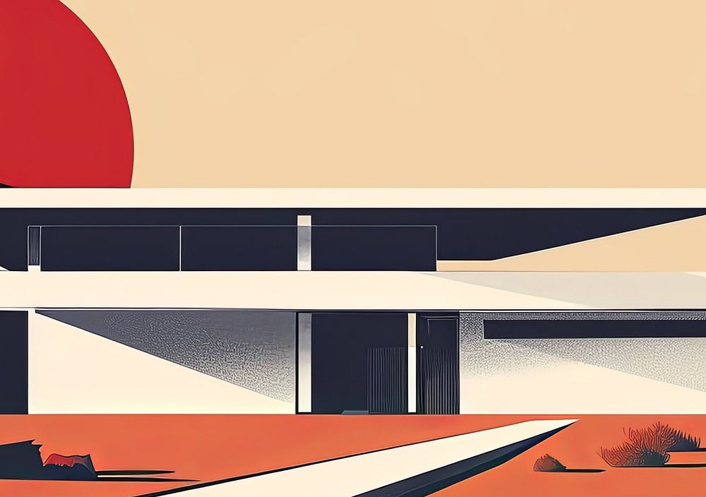 Ein beeindruckendes Architekturposter, das ein Bauhaus-Gebäude in seiner Simplizität zeigt.