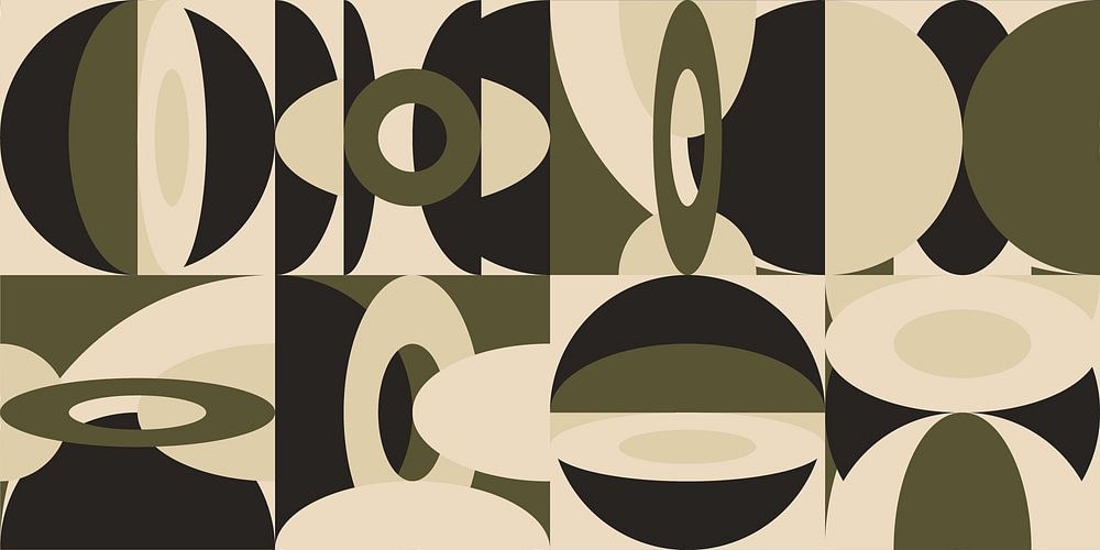 Moderne abstrakte minimalistische geometrische Formen in Grün, Beige, Schwarz