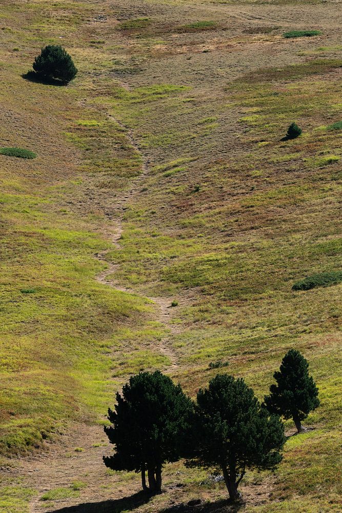 Ein Pfad führt die Wanderung entlang der Bäume auf den Berg.