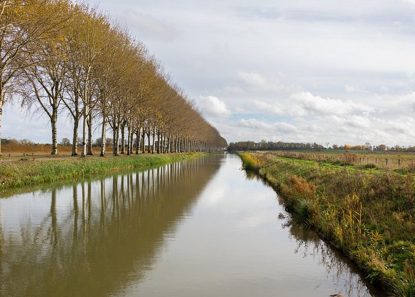 Baumreihe entlang eines Kanals im November in der Betuwe
