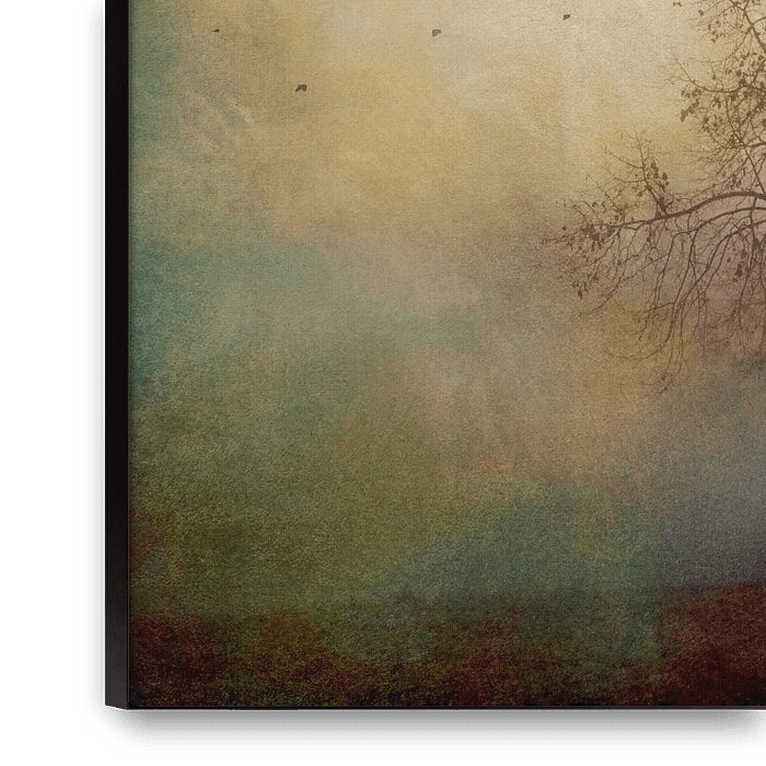 Bestelle dieses Landschafts-Wandbild Baumsilhouetten Im Herbstnebel von Dirk Wüstenhagen als Reproduktion auf Leinwand, Alu-Dibond, als Poster, Fototapete oder Acrylglasbild.