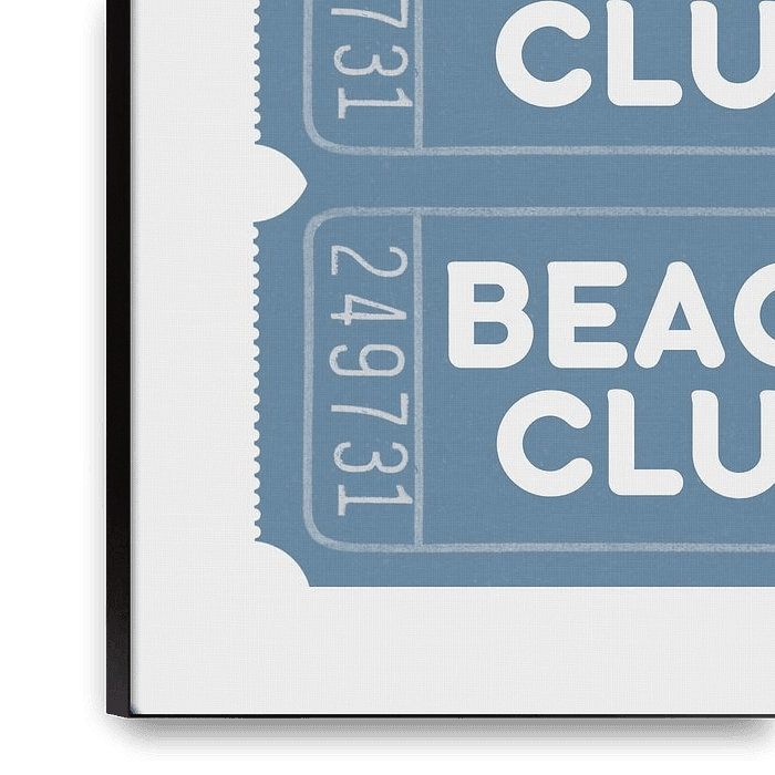 Bestelle dieses Landschafts-Wandbild Beach Club Eintrittskarten von Jolly and Dash als Reproduktion auf Leinwand, Alu-Dibond, als Poster, Fototapete oder Acrylglasbild.