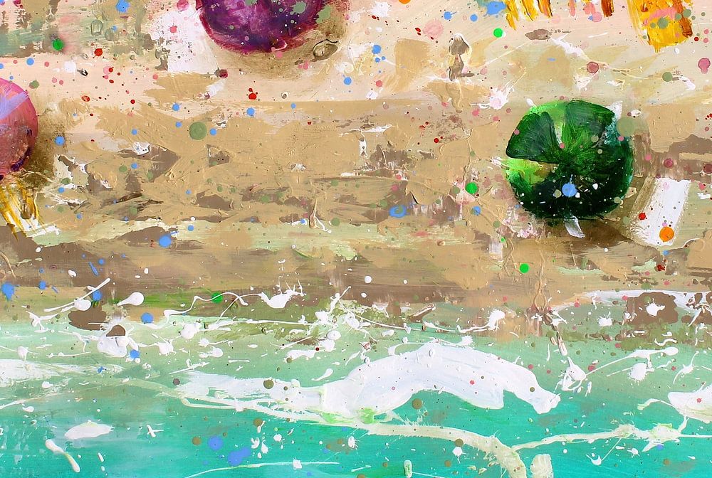 Gemälde eines Strandes von oben in der Sommerzeit.