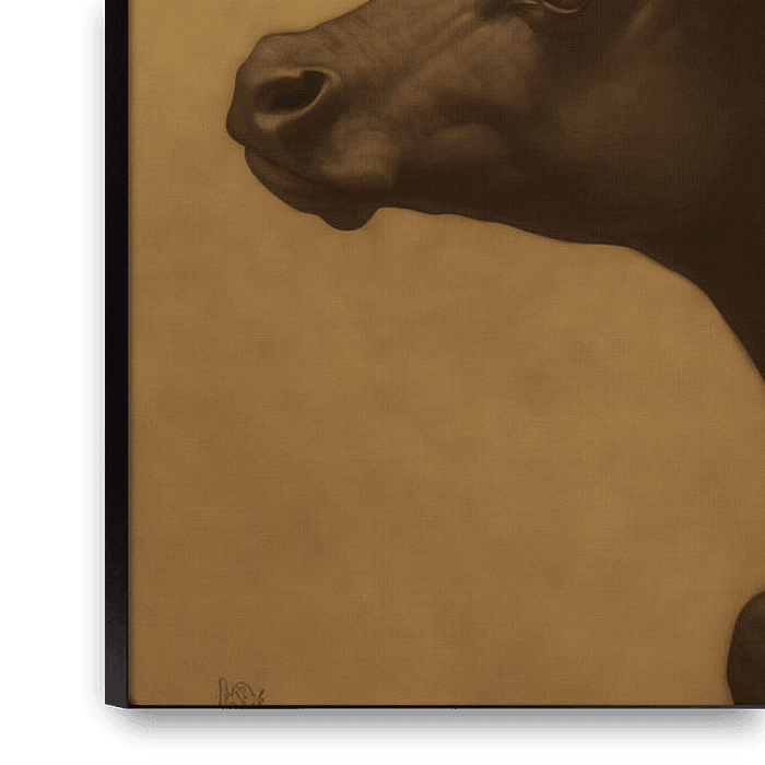 Der Titel "Beherrschung" ist für mich Ausdruck eines faszinierenden Spannungsfeldes zwischen Kraft und Eleganz, Kontrolle und Wildheit. Das Bild zeigt eine Frau, die mit einer scheinbaren Leichtigkeit auf einem mächtigen Stier reitet, ein Symbol für rohe Stärke und ungezähmte Natur. Doch sie sitzt ruhig, gelassen und voller Anmut auf…