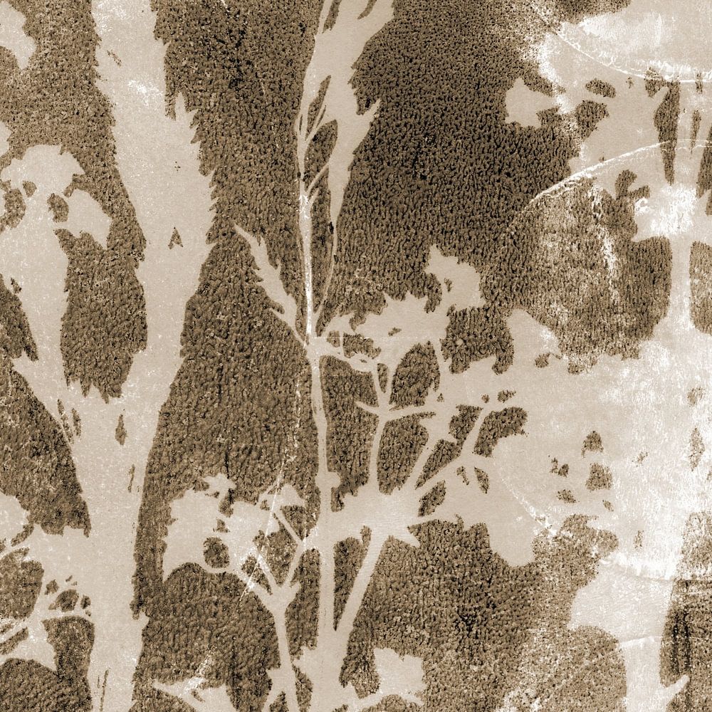 Beige Blumen. Abstrakte Retro-Botanik. Blumen, Pflanzen und Blätter in braun Inspiriert von der Natur. Monotypie von echten Pflanzen und abstrakte Texturen Mixed Media abstrakte botanische Kunst Industrial, Retro, Bohemian, Minimalist, skandinavischen Einrichtungsstil.