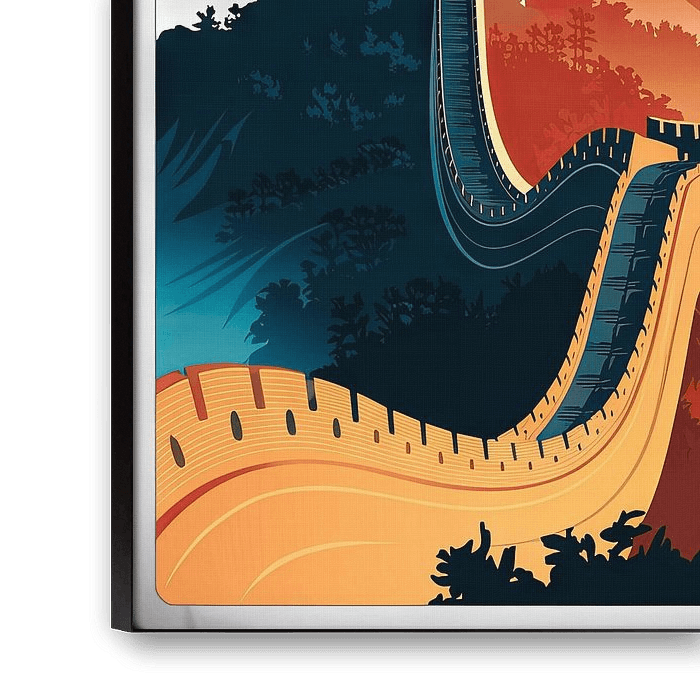 Majestätisch windet sich eine uralte Mauer durch beeindruckende Berglandschaften, deren sanfte Farbverläufe von tiefem Rot bis zartem Gelb reichen. Die Silhouette der Mauer, umgeben von mysteriösem Nebel und majestätischen Gipfeln, erzählt Geschichten von längst vergangenen Zeiten. Ein einladender Schriftzug verheißt das Abenteuer in Peking, wo Geschichte und Natur harmonisch vereint sind.