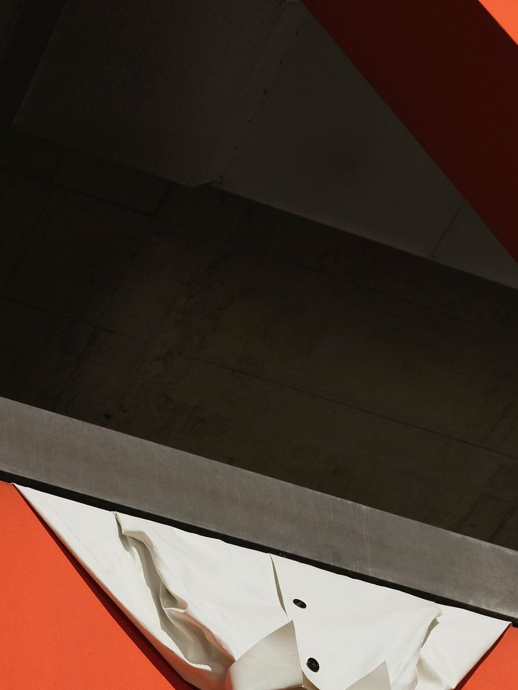 Wenn man durch Rotterdam spaziert und sich umschaut, stößt man auf eine Menge interessanter Architektur. Ich fühlte mich zum Beispiel von diesem Linienspiel angezogen, das durch eine Jacke, die über einem der roten Balken hängt, schön unterbrochen wird.