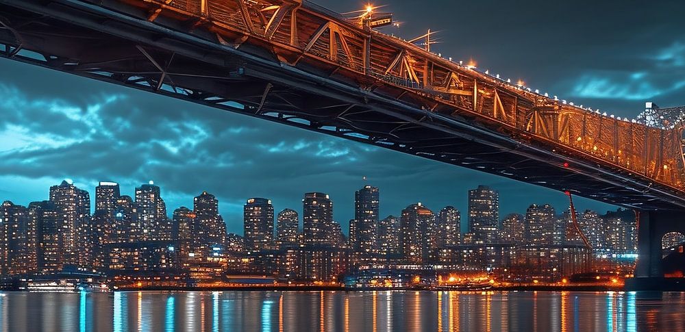 Beleuchtete Brücke in der Nacht