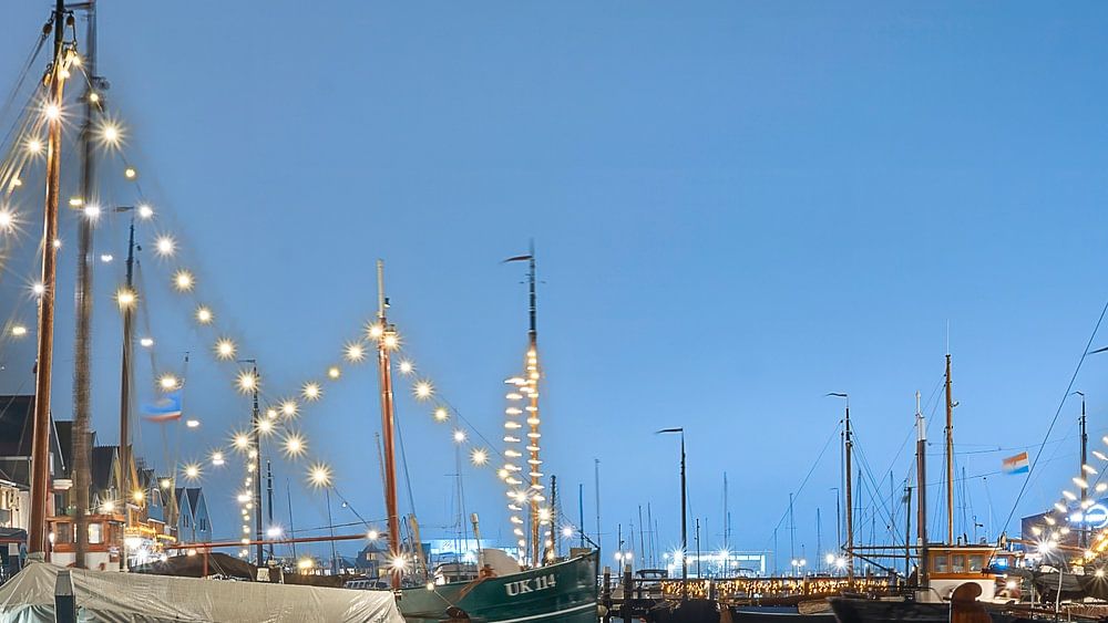 Im Herbst werden die Schiffe im Westerhaven von Urk beleuchtet. Dadurch entsteht während der "blauen Stunde" (die Zeit nach Sonnenuntergang) eine stimmungsvolle Szene.