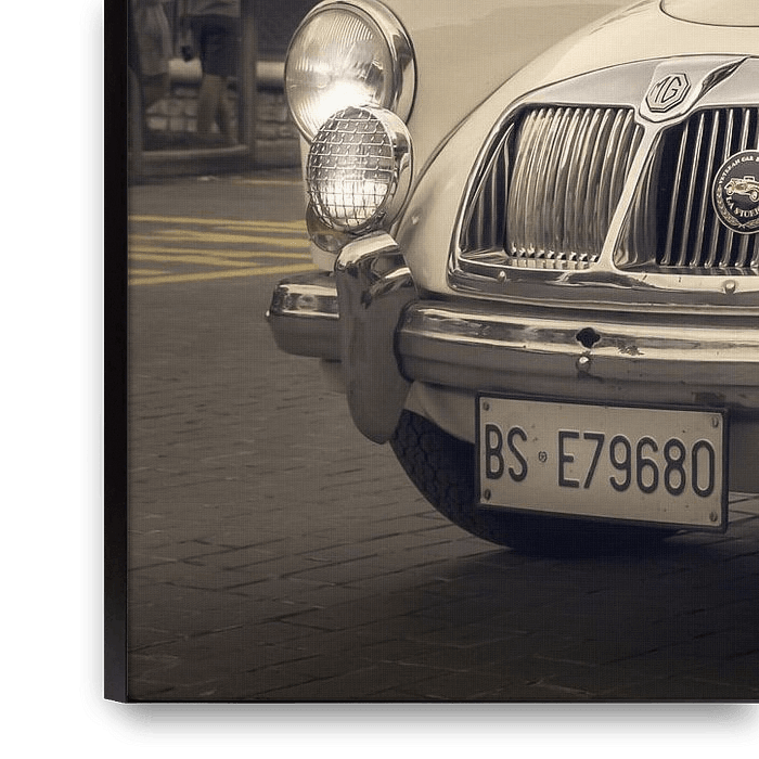 Het schitterende plaatsje Bellagio aan het Lago di Como (merengebied Noord-Italië) is het perfecte decorum voor deze vintage MG cabrio in roomwit. Hij leek er voor weg gezet, de eigenaar zat uiteraard gedistingeerd aan en cappuccino op het terras. Op de achtergrond is de opstapplaats voor de veerboot naar Como in beeld.