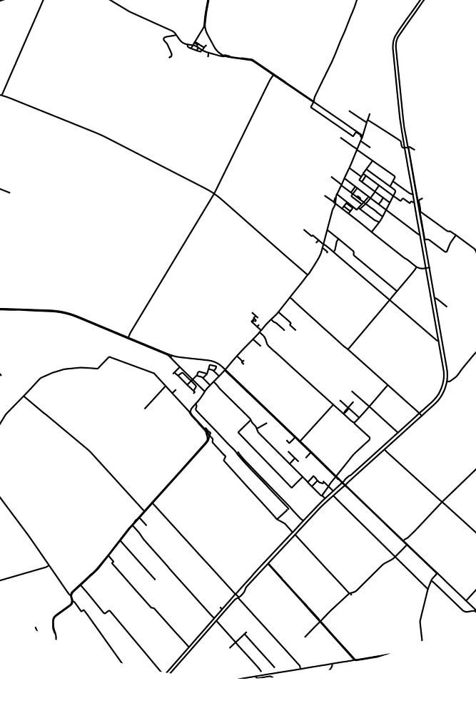 Schwarz-weiße Karte, Straßenkarte oder Straßenplan von Bellingwolde. Bellingwolde liegt in der Gemeinde Westerwolde in der Provinz Groningen. Auf dem Stadtplan sind alle öffentlichen Straßen in Bellingwolde eingezeichnet. Außerdem ist die Karte mit den Koordinaten des Zentrums von Bellingwolde versehen.