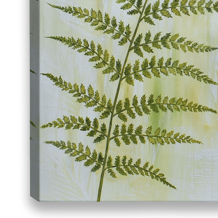 Acrylmalerei eines Farnes, einer Pflanze, botanisch passend zu verschiedenen Einrichtungsstilen wie Natur, Böhmisch. Im Hintergrund sind selbst entworfene Blätter eingeprägt.