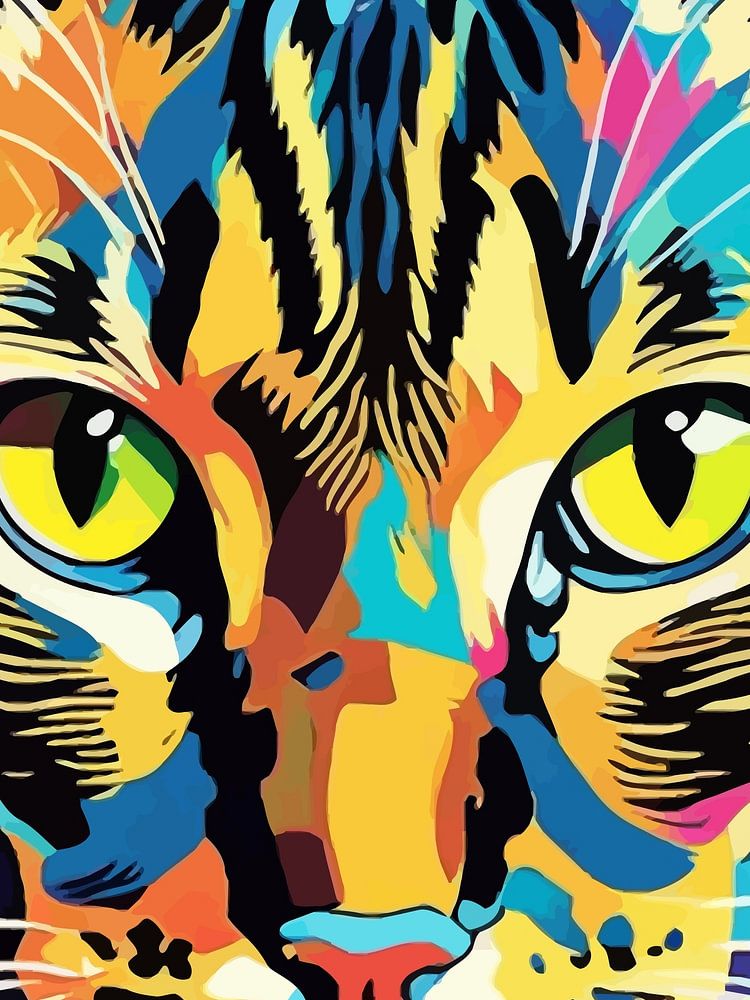 Bengalkatzen-Pop-Art ist ein beliebter Kunststil, der mit leuchtenden Farben und kühnen, grafischen Formen eine eindrucksvolle Darstellung der Rasse Bengalkatze schafft. Diese Art von Kunst enthält typischerweise Elemente der Popkultur und des zeitgenössischen Designs, um dem Kunstwerk einen modernen und lebendigen Charakter zu verleihen. Die Bengalkatze ist aufgrund ihres charakteristischen Fellmusters und ihres auffälligen Aussehens ein beliebtes Motiv für Pop-Art-Interpretationen, wobei die Künstler oft das exotische Aussehen und die wilde Natur der Katze in ihren Kompositionen aufgreifen. Ob in Form eines farbenfrohen Drucks, eines stilisierten Gemäldes oder einer digitalen Illustration, Bengalkatzen-Pop-Art ist eine lustige und dynamische Art, diese einzigartige und schöne Katzenrasse zu präsentieren.