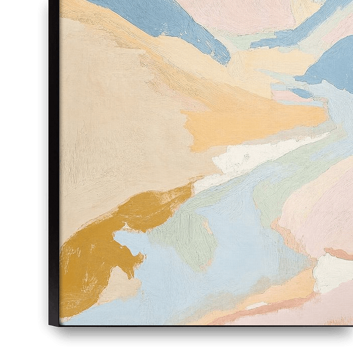 Bestelle dieses Landschafts-Wandbild Berge Abstrakt Pastell Fauvismus Natur von Niklas Maximilian als Reproduktion auf Leinwand, Alu-Dibond, als Poster, Fototapete oder Acrylglasbild.