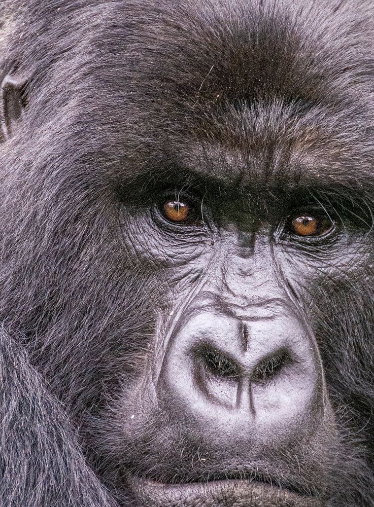 Berggorilla im Regenwald Afrikas. Auf Safari zu den Menschenaffen in Ruanda.