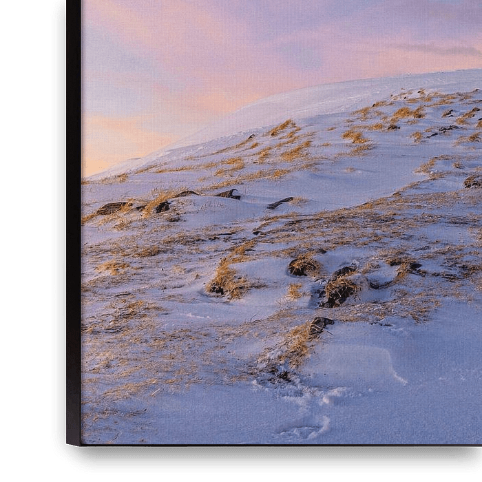 Bestelle dieses Landschafts-Wandbild Berglandschaft "Abendrot im Winter" von Coen Weesjes als Reproduktion auf Leinwand, Alu-Dibond, als Poster, Fototapete oder Acrylglasbild.