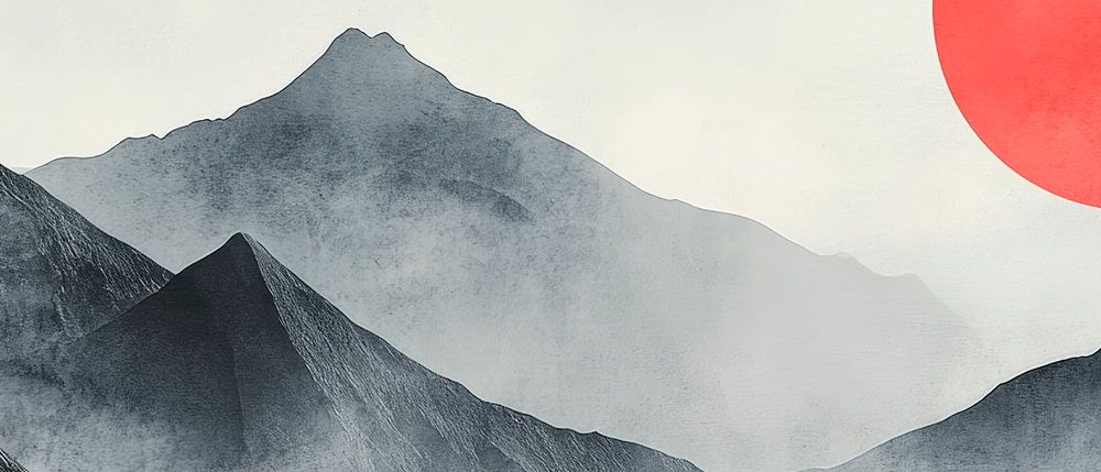 In sanften Schwarz- und Grautönen erheben sich majestätische Berge aus einem nebligen Hintergrund, während ein leuchtend roter Sonnenball den Himmel dominiert. Diese harmonische Komposition vermittelt Ruhe und Anmut, ideal um als beruhigendes Element im Schlafzimmer oder inspirierendes Stück im Büro zu brillieren. Ein Hauch von Natur,…