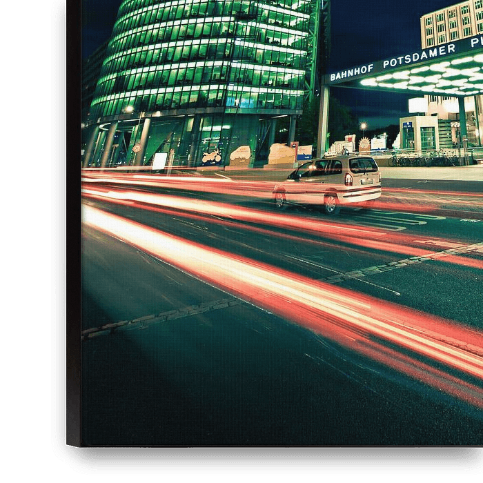 Bestelle das Foto Berlin - Nachts am Potsdamer Platz von Alexander Voss als Reproduktion auf Leinwand, Alu-Dibond, als Poster, Fototapete oder Acrylglasbild.